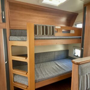 Kylskåp, Kassettoalett, Taklucka, Våningssäng, Spis, Markis, Frysfack, Parsäng, Tvättho, Dusch, Elpatron, Trumatic, Stödben, Kassettgardiner, Varmvattenberedare