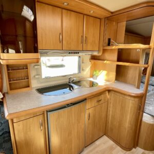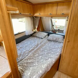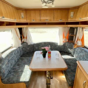 Kylskåp, Kassettoalett, Kassettgardiner, Taklucka, Centralvärme, Golvvärme, Spis, Varmvattenberedare, Markis, Frysfack, Parsäng, Tvättho, Elpatron, Trumatic, Stödben, Takstänger/stege, TV-antenni tai lautasantenni, Dusch, Cykelställ