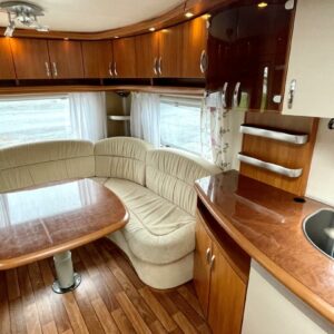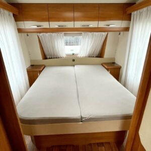 Alde, Kylskåp, Kassettoalett, Kassettgardiner, Taklucka, Golvvärme, Spis, Varmvattenberedare, Vätsecirkulationsvärme, Frysfack, Parsäng, Tvättho, Elpatron, TV-antenni tai lautasantenni, Stödben, kwh-mittari, sähkön ulosotto, televisioteline