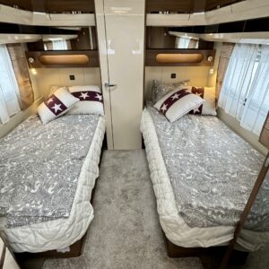 Alde, Separata sängar, Kassettgardiner, Kassettoalett, Gasugn, Kylskåp, Golvvärme, Golvmattor i boendedelen, Spis, Varmvattenberedare, Markis, Vätsecirkulationsvärme, Frysfack, Tvättho, Cykelställ, Dusch, Elpatron, TV-antenni tai lautasantenni, Stödben, Taklucka, Takstänger/stege, kwh-mittari, sähkön ulosotto, televisioteline, Asuinosan hyttysovi/verho