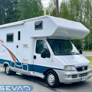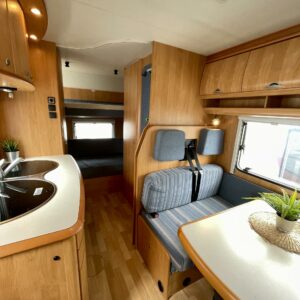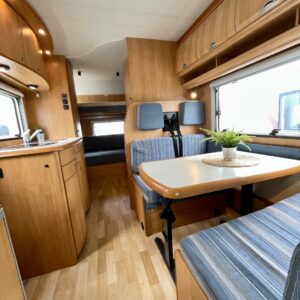 Cykelställ, Markis, Truma, Kylskåp, Kassettoalett, Kassettgardiner, Taklucka, Våningssäng, Spis, Varmvattenberedare, Frysfack, Servostyrning, Tvättho, Radio, Dusch, Dubbelbotten, Turbo