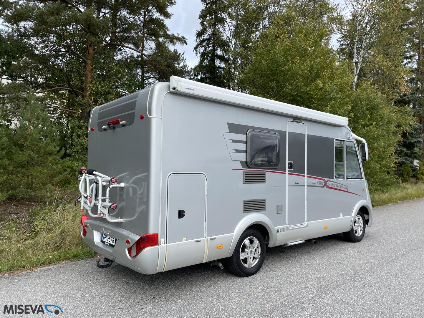 Specialfälgar, Luftkonditionering i körutrymmet, Kylskåp, Två däck, Kassettoalett, Centralvärme, Spis, Motorvärmare, Varmvattenberedare, Markis, Frysfack, Parsäng, Tvättho, Pysäköintikamera, Cykelställ, Dusch, Elektriska fönster, Elpatron, Elektriska speglar, Elektrisk trappa, TV-antenni tai lautasantenni, Trumatic, Vakionopeudensäädin, Dragkrok, 2 x kevytmet.vanteet, laskuvuode, pullonvaihtaja
