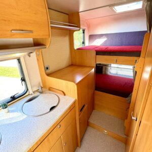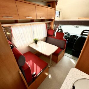 Luftkonditionering i körutrymmet, Kylskåp, Två däck, Kassettoalett, Kassettgardiner, Taklucka, Våningssäng, Centralvärme, Startspärr, Golvmattor i boendedelen, Spis, Motorvärmare, Varmvattenberedare, Markis, Servostyrning, Frysfack, Parsäng, Cykelställ, Radio, Dusch, Trumatic, Turbo