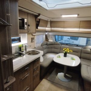 Alde, Separata sängar, Kylskåp, Kassettoalett, Kassettgardiner, Taklucka, Golvvärme, Golvmattor i boendedelen, Spis, Varmvattenberedare, Markis, Mikrovågsugn, Frysfack, Tvättho, Radio, Dusch, Elpatron, TV-antenni tai lautasantenni, Stödben, Lattialämmitys (nestekierto), Kesärenkaat, 1 x kevytmet.vanteet, kwh-mittari, mover, kaasun ulosotto, sähkön ulosotto, televisio, televisioteline, Ilmastointi: Automaattinen