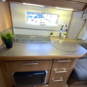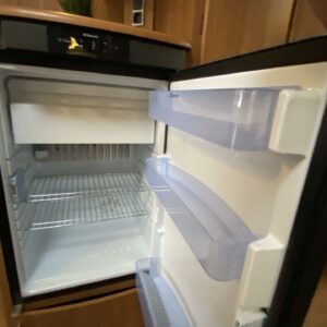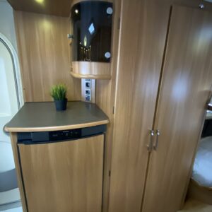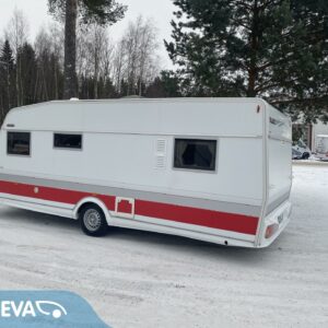 Alde, Kylskåp, Kassettoalett, Kassettgardiner, Taklucka, Våningssäng, Spis, Varmvattenberedare, Vätsecirkulationsvärme, Frysfack, Parsäng, Tvättho, Dusch, Elpatron, Stödben, kwh-mittari, kaasun ulosotto