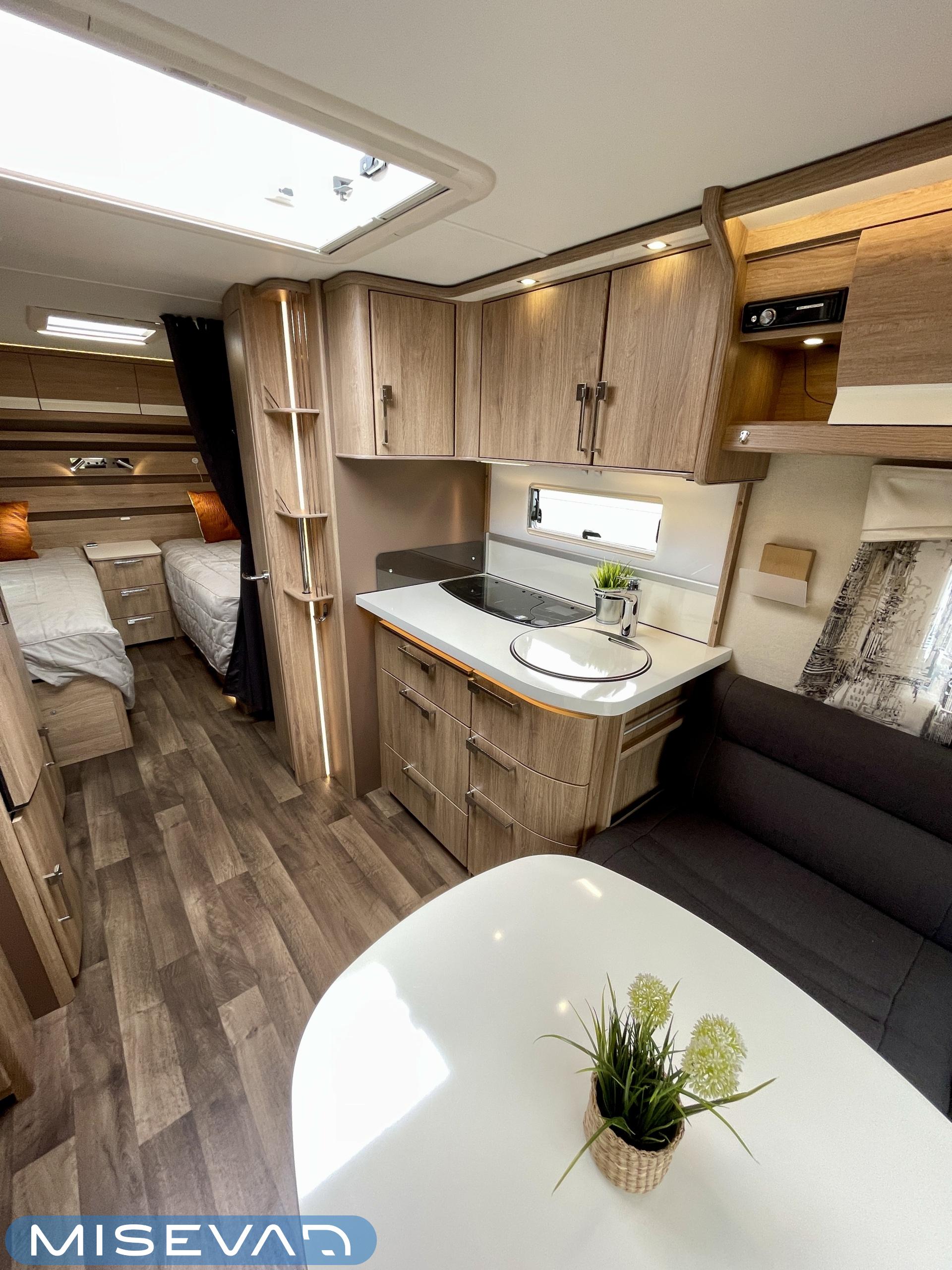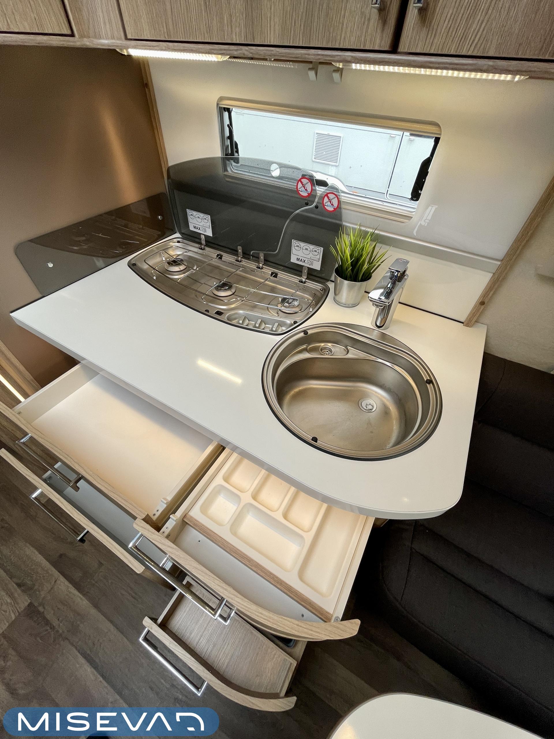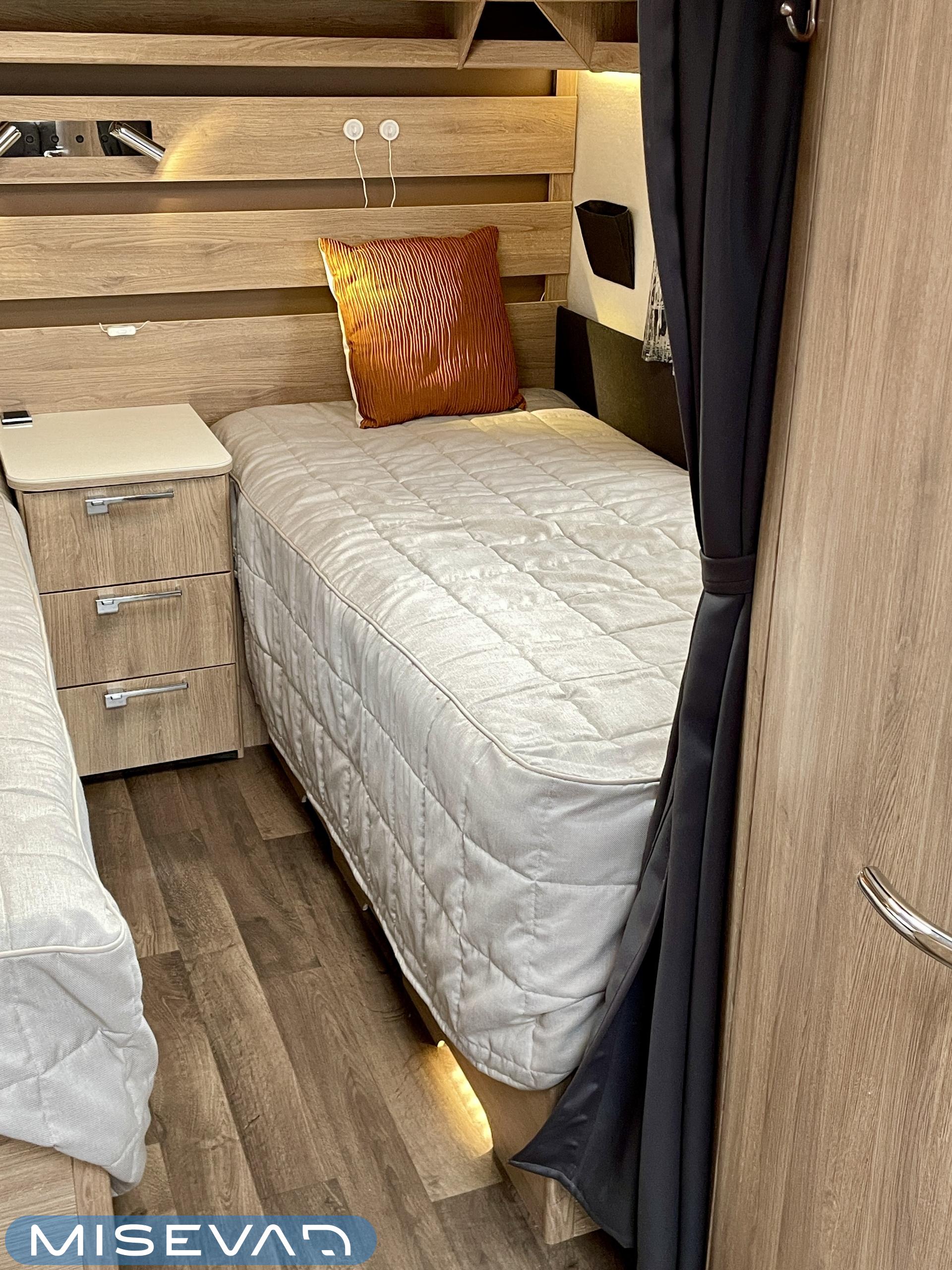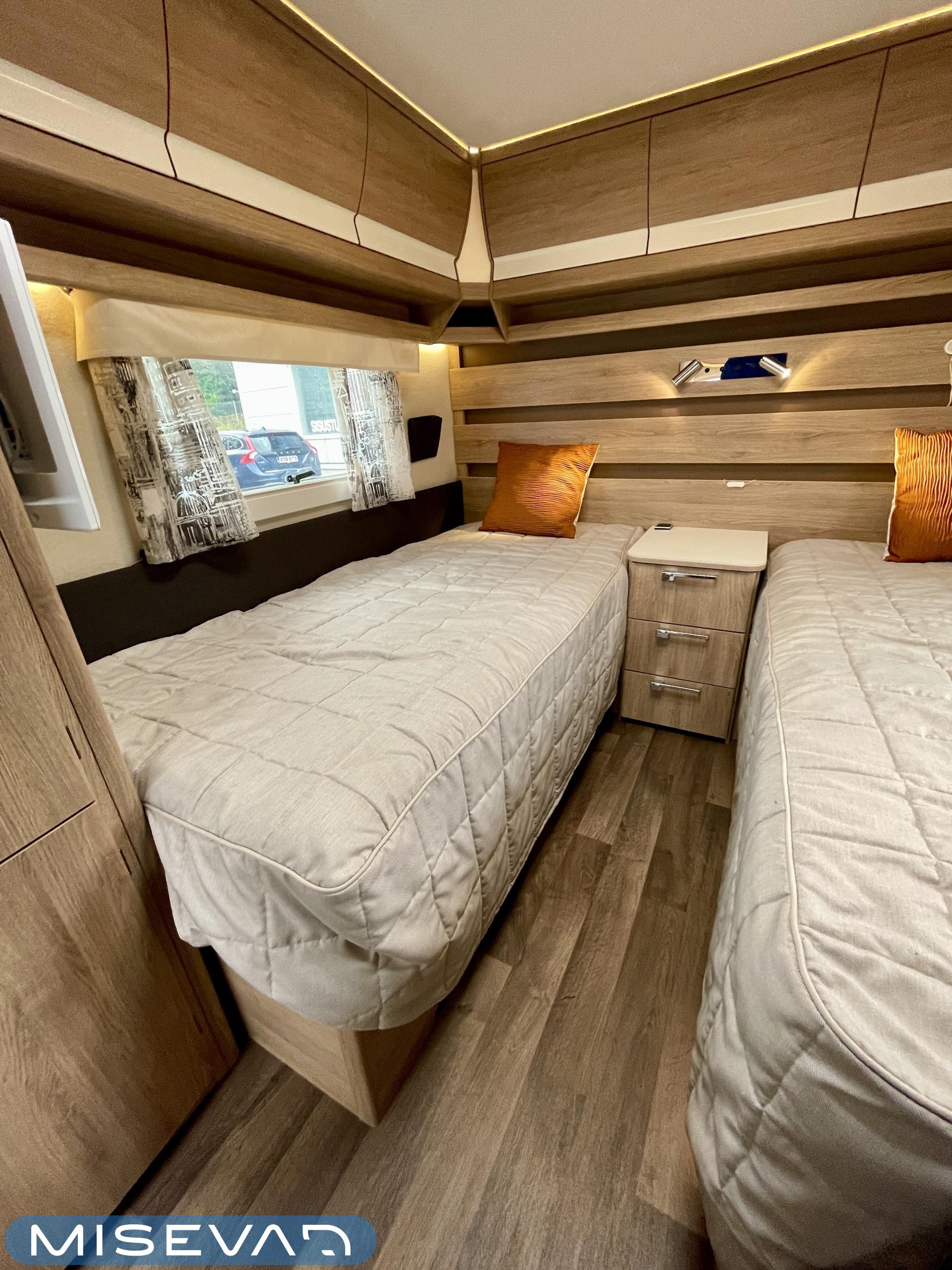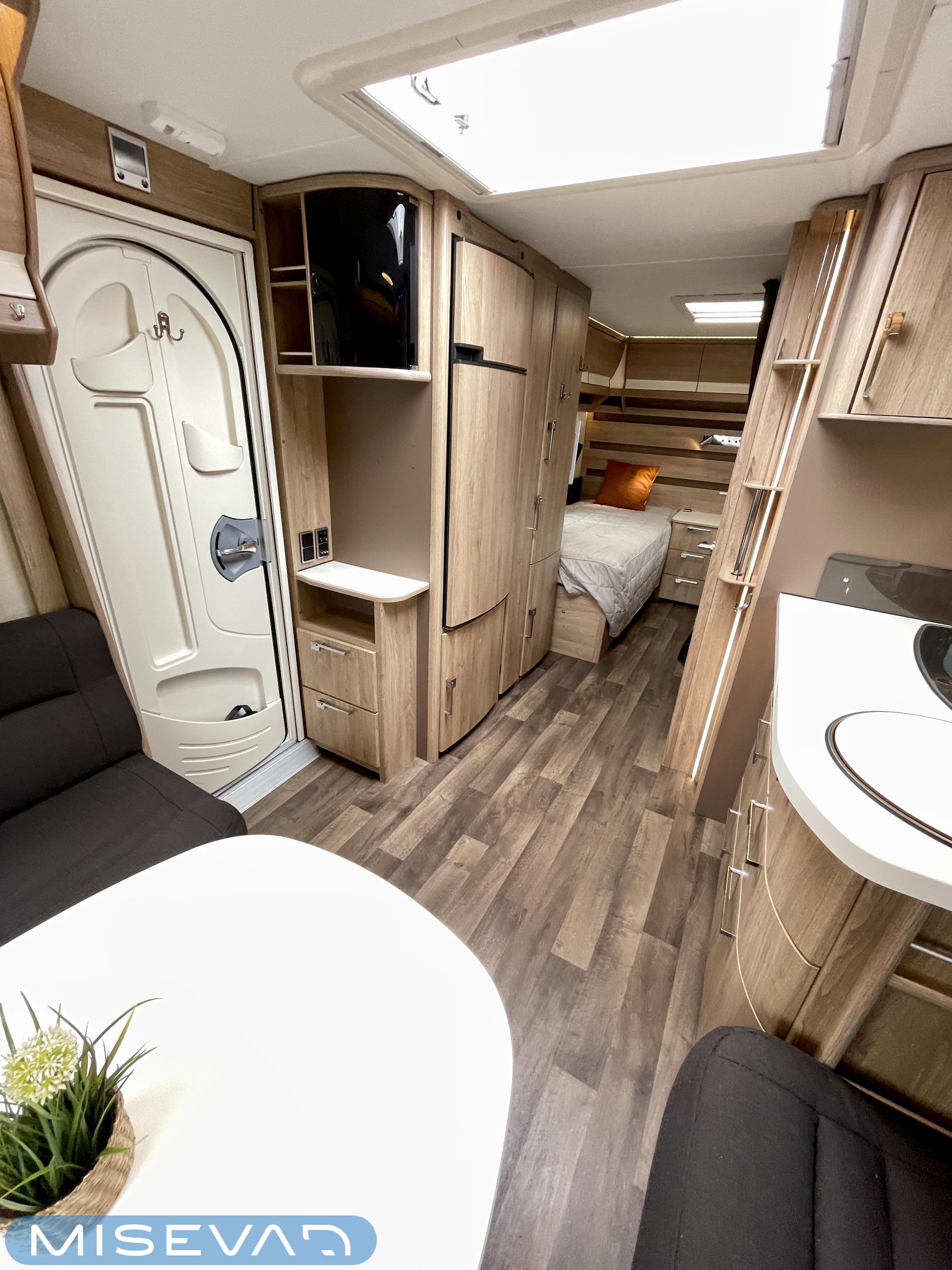Alde, CD-soitin, Specialfälgar, Separata sängar, Isolerad gråvattentank, Kylskåp, Kassettoalett, Kassettgardiner, Taklucka, Golvvärme, Spis, Varmvattenberedare, Markis, Vätsecirkulationsvärme, Frysfack, Tvättho, Elpatron, TV-antenni tai lautasantenni, Stödben, Lattialämmitys (nestekierto), kwh-mittari, harmaavesisäiliön lämmitys, jenkkijääkaappi, liesituuletin, kaasun ulosotto, sähkön ulosotto, Asuinosan hyttysovi/verho, Kotelomarkiisi