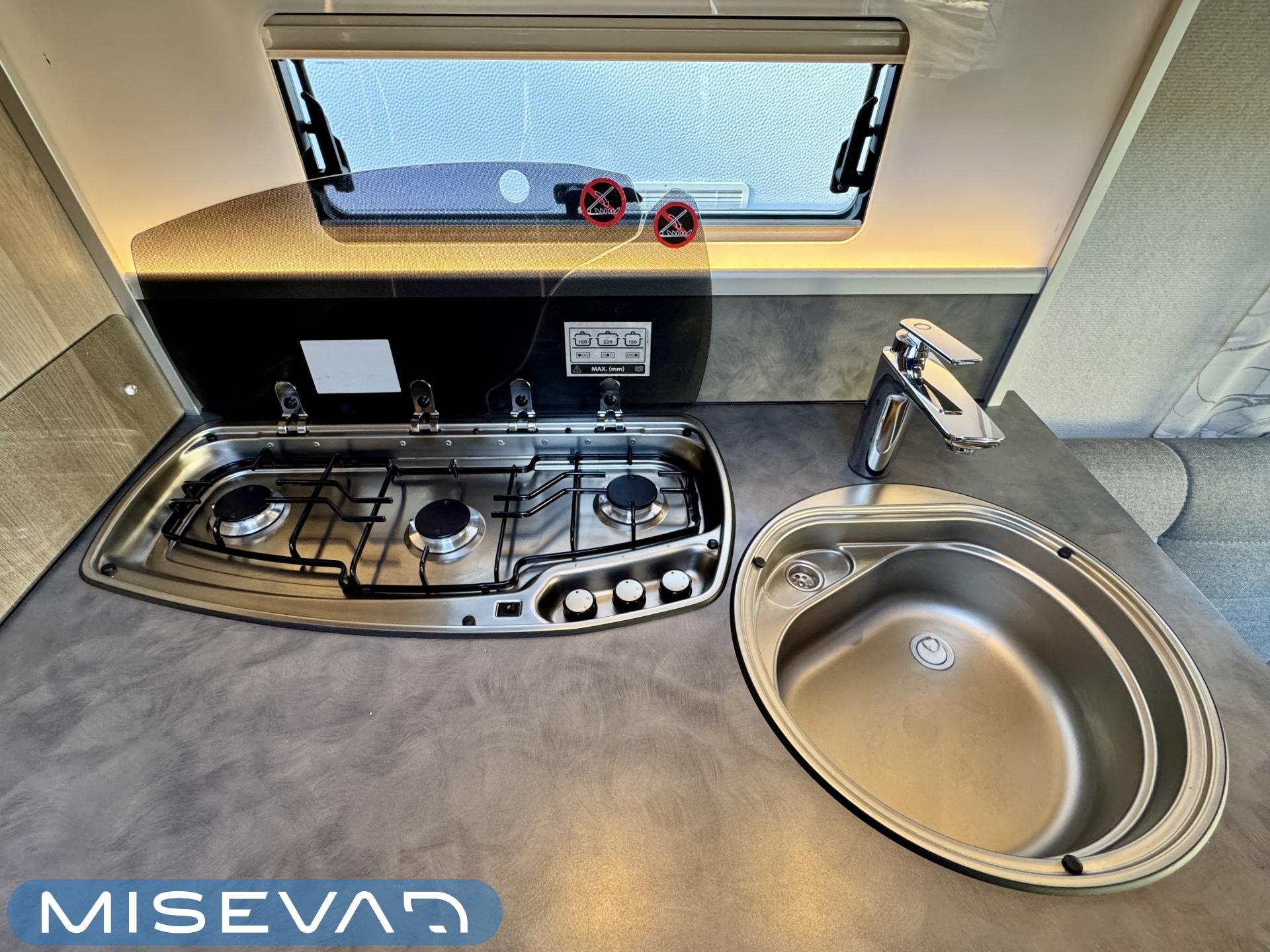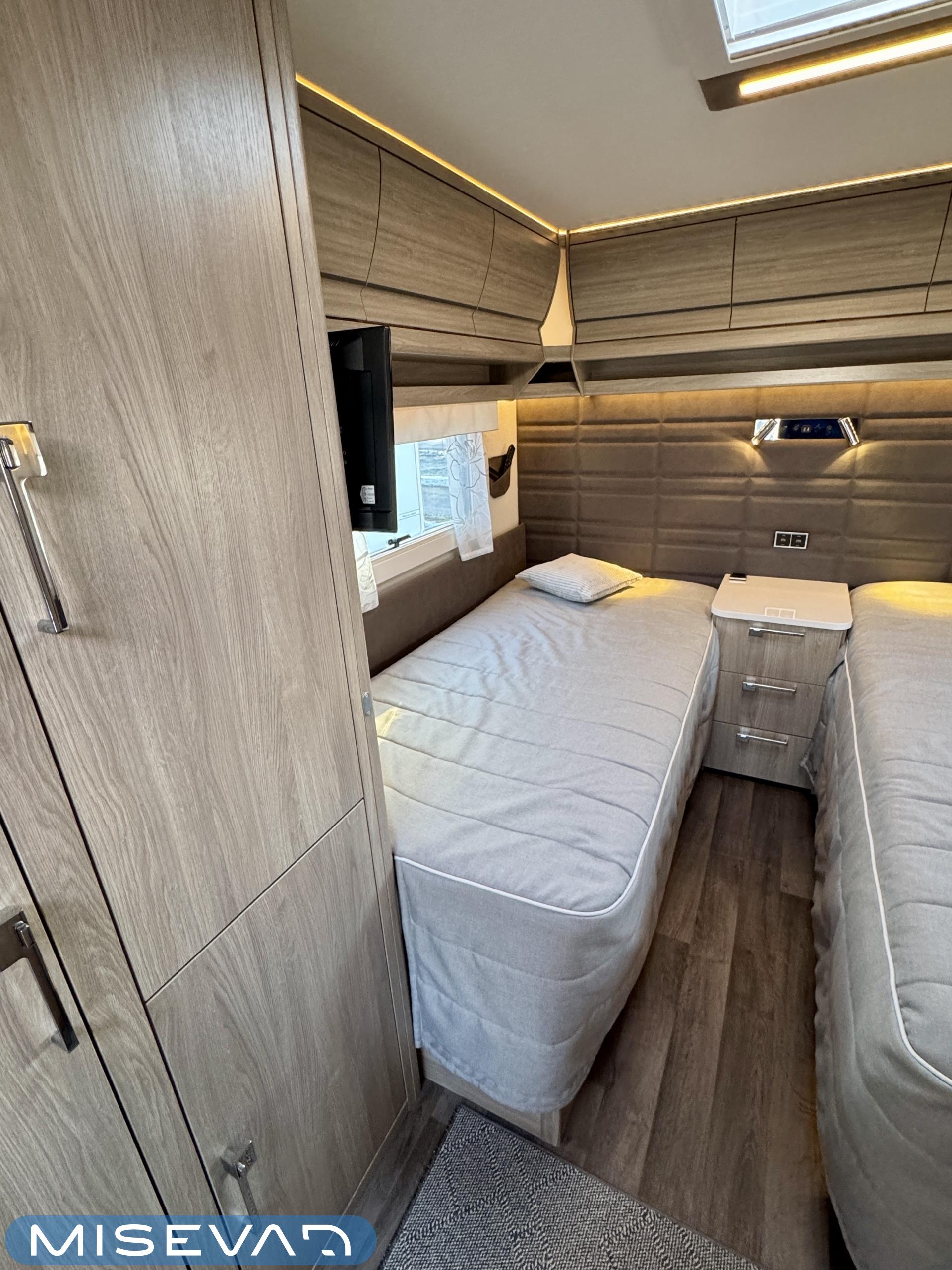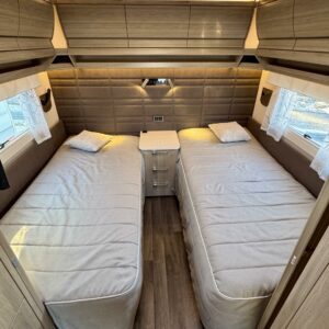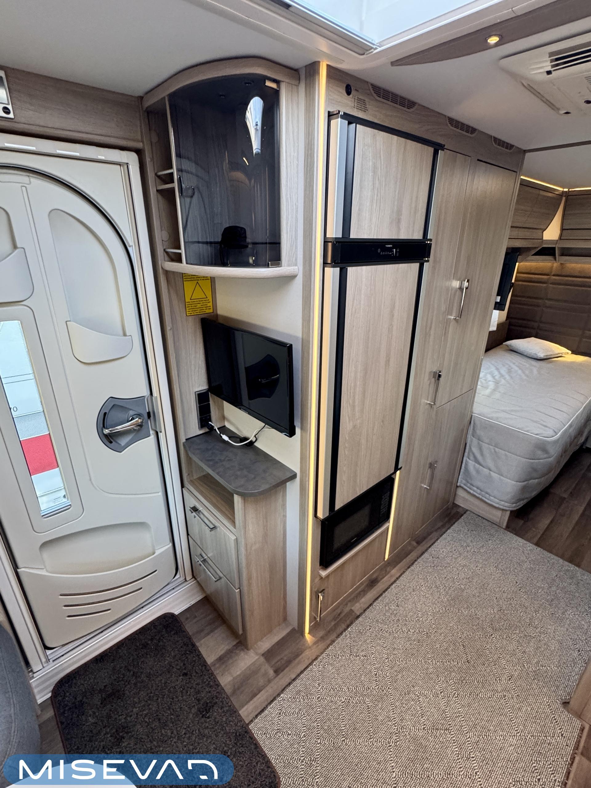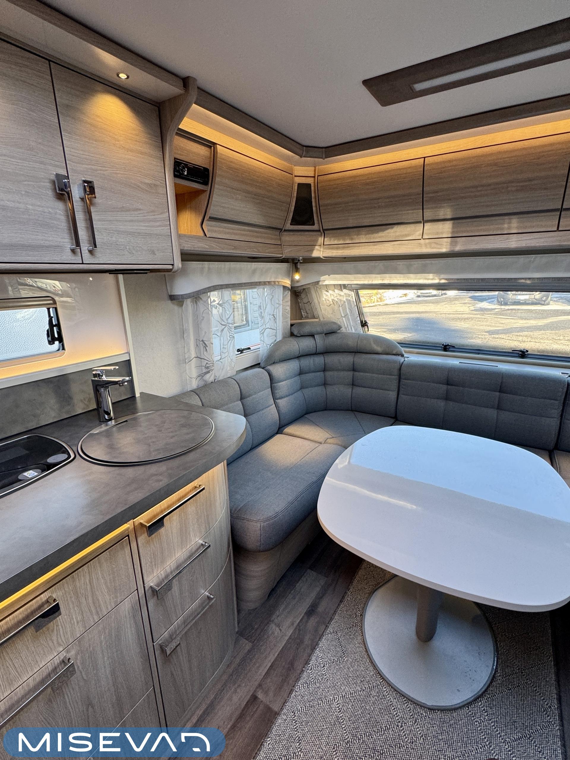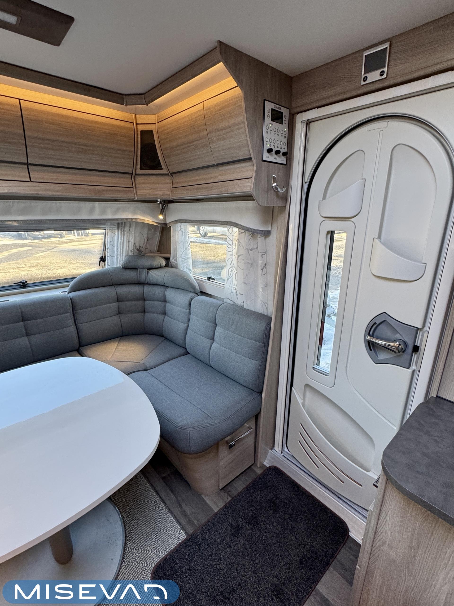 Alde, Separata sängar, Kylskåp, Taklucka, Kassettgardiner, Kassettoalett, Golvvärme, Golvmattor i boendedelen, Spis, Varmvattenberedare, Vätsecirkulationsvärme, Frysfack, Tvättho, Elpatron, Dusch, TV-antenni tai lautasantenni, Stödben, Ilmastointi: Automaattinen