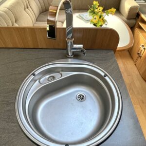 Alde, Kylskåp, Gasugn, Kassettoalett, Taklucka, Golvvärme, Spis, Vätsecirkulationsvärme, Dusch, Stödben, Ilmastointi (asuintila), kwh-mittari, kaasun ulosotto, sähkön ulosotto, suihkun ulosotto