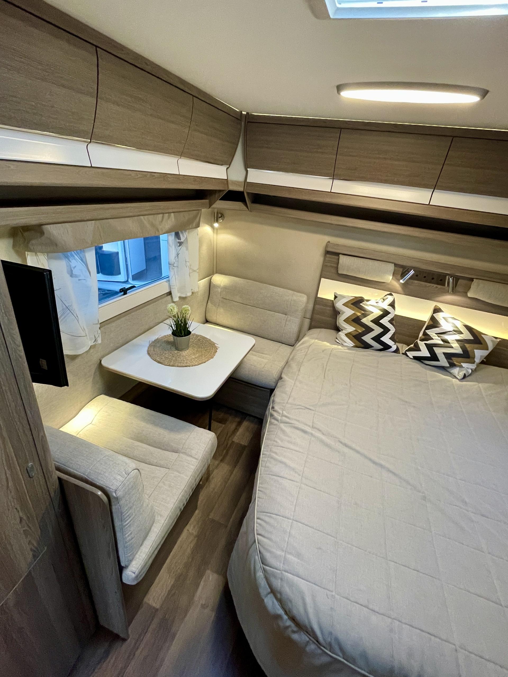 Pitkittäinen parivuode, Mover- vaununsiirrin, Solpanel, Alde- nestekiertoinen keskuslämmitys, Alde, CD-soitin, Specialfälgar, Isolerad gråvattentank, Larm, Kylskåp, Gasugn, Kassettoalett, Kassettgardiner, Taklucka, Golvvärme, Spis, Varmvattenberedare, Vätsecirkulationsvärme, Frysfack, Parsäng, Tvättho, Radio, Elpatron, TV-antenni tai lautasantenni, Stödben, Lattialämmitys (nestekierto), liesituuletin, pullonvaihtaja, kaasun ulosotto, sähkön ulosotto, suihkun ulosotto, televisioteline, Asuinosan hyttysovi/verho, mover, Keskuspölynimuri, Kabe Airvent, ATC (AL-KO vaunun vakautusjärjestelmä), Hulppea liesi-uuni-grilli yhdistelmä, Ilmastointi (asuintila)