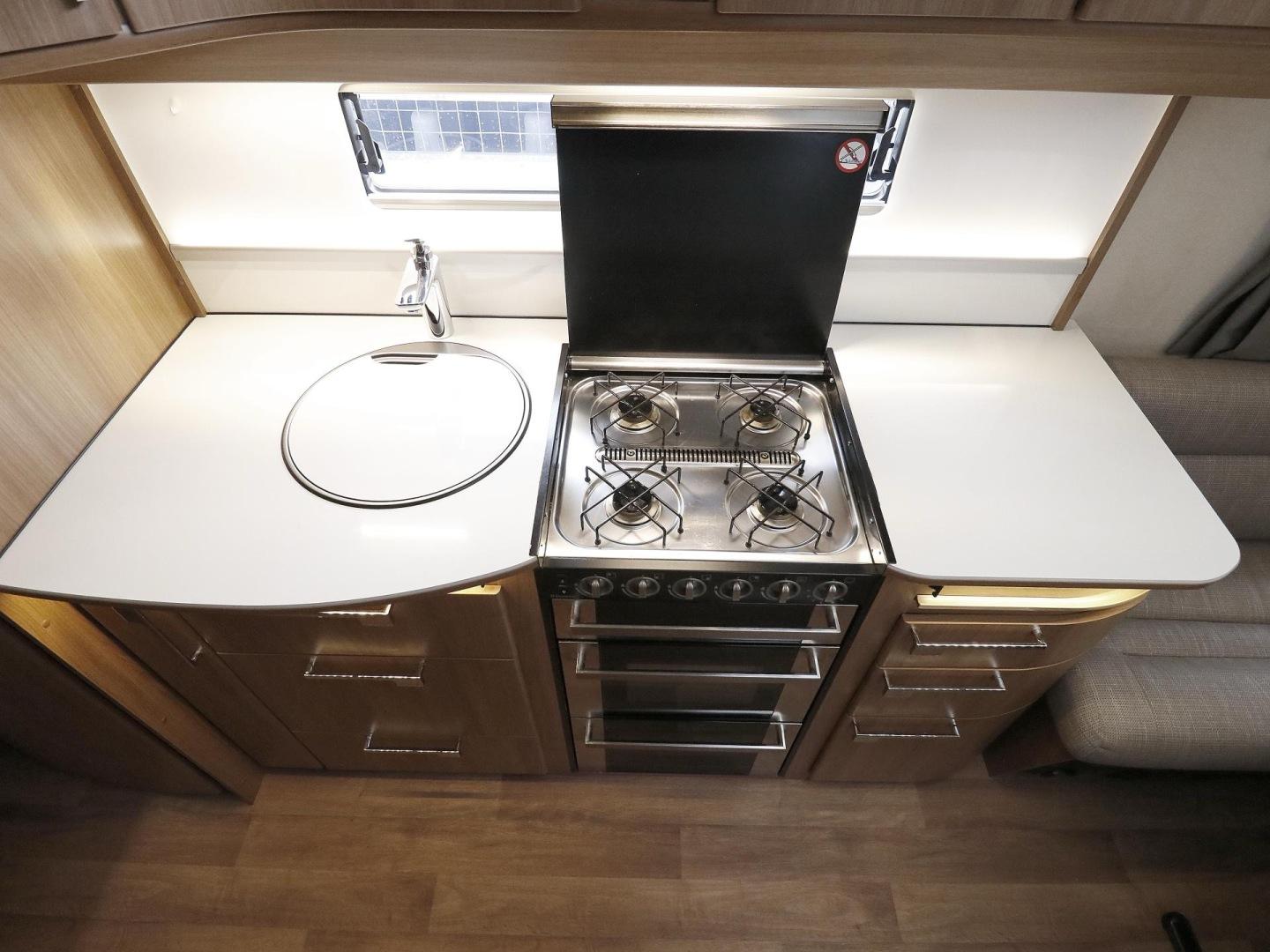 System för stabilitetskontroll, Alde, CD-soitin, Specialfälgar, Isolerad gråvattentank, Kylskåp, Gasugn, Kassettoalett, Kassettgardiner, Taklucka, Golvvärme, Varmvattenberedare, Vätsecirkulationsvärme, Frysfack, Parsäng, Radio, Dusch, Elpatron