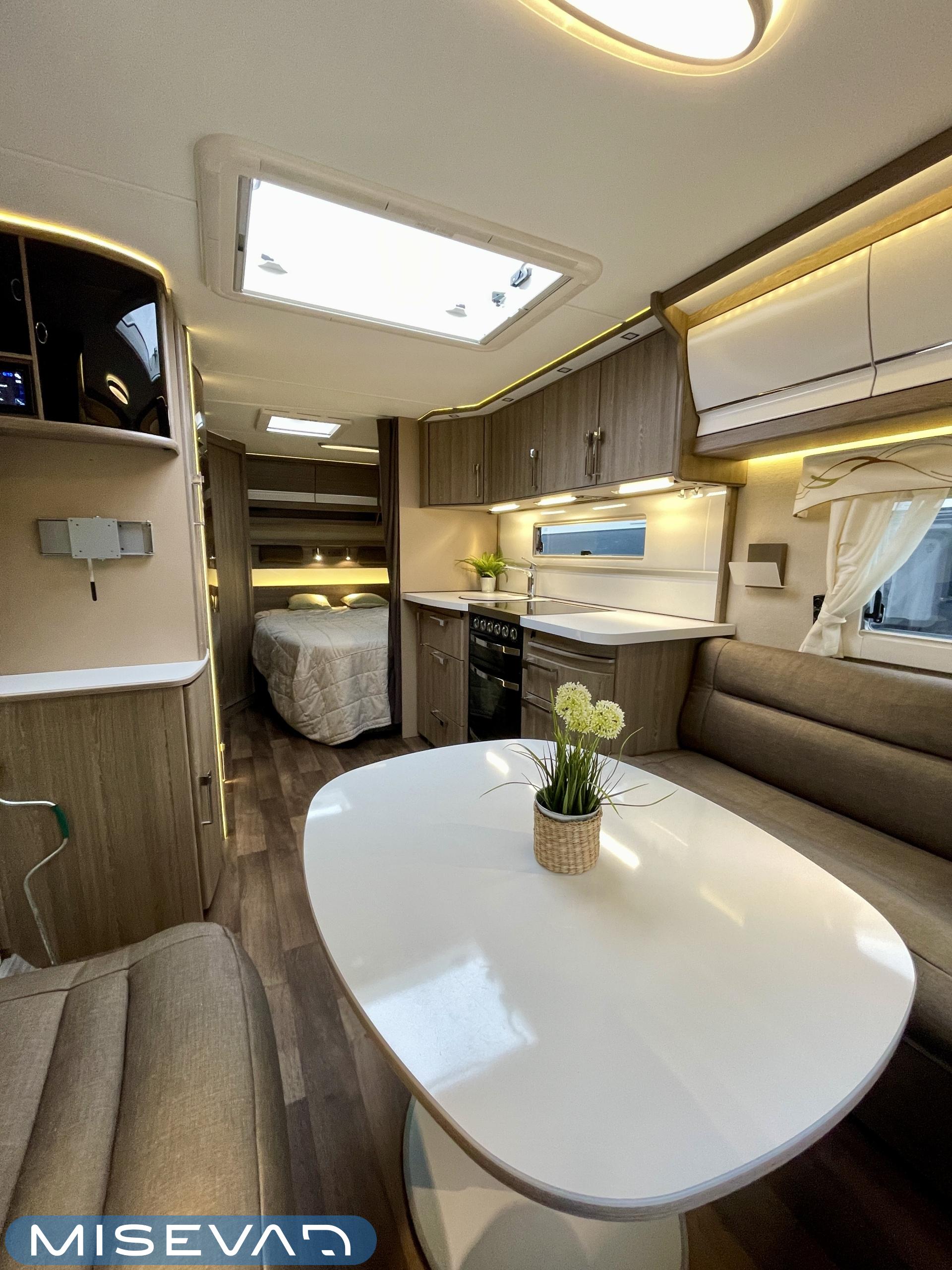 Alde, Bluetooth, CD-soitin, Specialfälgar, Isolerad gråvattentank, Kylskåp, Gasugn, Kassettoalett, Kassettgardiner, Taklucka, Golvvärme, Spis, Varmvattenberedare, MP3, Frysfack, Vätsecirkulationsvärme, Parsäng, Tvättho, Radio, Dusch, Elpatron, TV-antenni tai lautasantenni, Lattialämmitys (nestekierto), 1 x kevytmet.vanteet, kwh-mittari, liesituuletin, kaasun ulosotto, televisioteline, sähkön ulosotto, suihkun ulosotto, Asuinosan hyttysovi/verho, ATC (AL-KO vaunun vakautusjärjestelmä), Ilmastointi (asuintila)