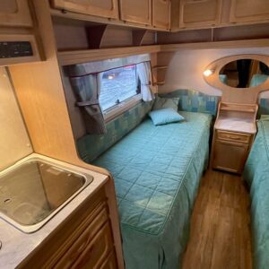 Stödben, Elpatron, Dusch, Tvättho, Frysfack, Varmvattenberedare, Spis, Lattialämmitys- nestekiertoinen, Taklucka, Kassettgardiner, Kasetti- WC, Isolerad gråvattentank, Separata sängar, Alde- nestekiertoinen keskuslämmitys, Sähkön ulosotto----------------------------------