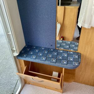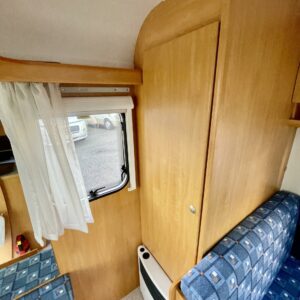 Truma, Kylskåp, Kassettoalett, Kassettgardiner, Taklucka, Spis, Varmvattenberedare, Frysfack, Parsäng, Tvättho, Stödben