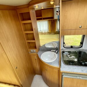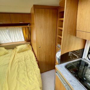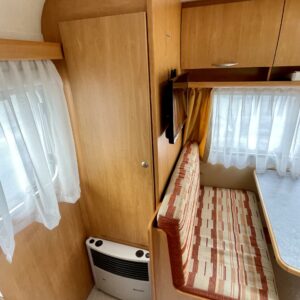 Kylskåp, Kassettoalett, Kassettgardiner, Taklucka, Spis, Varmvattenberedare, Markis, Frysfack, Parsäng, Tvättho, Dusch, Elpatron, Stödben, Kesärenkaat, televisioteline