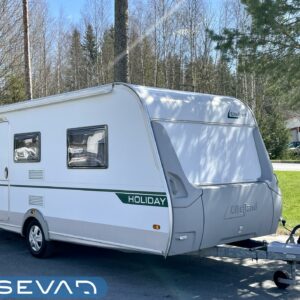 Televisio, Saarekevuode, Cykelställ, Markis, Kassettgardiner, Kassettoalett, Kylskåp, Taklucka, Spis, Varmvattenberedare, Tvättho, Parsäng, Trumatic, Stödben, Elpatron, Golvvärme
