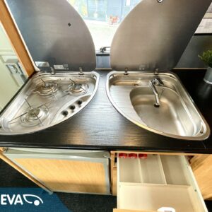 Truma, Kylskåp, Två däck, Kassettoalett, Kassettgardiner, Taklucka, Spis, Varmvattenberedare, Markis, Servostyrning, Frysfack, Tvättho, Cykelställ, Radio, Elektriska fönster, Elektriska speglar, Turbo, kwh-mittari
