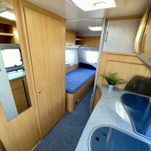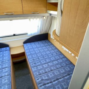 Framtält, Kylskåp, Kassettoalett, Kassettgardiner, Taklucka, Spis, Varmvattenberedare, Frysfack, Tvättho, Elpatron, Trumatic, Stödben, TV-antenn/parabolantenn, Separata sängar