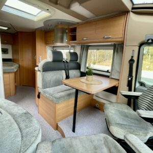 Truma, Elpatron, Ilmastointi (ohjaamo), Turbo, Radio, Kassettoalett, Två däck, Kassettgardiner, Varmvattenberedare, Parsäng, Servostyrning, ABS-bromsar, CD-soitin, Specialfälgar, Kylskåp, Taklucka, Spis, Motorvärmare, Markis, Frysfack, Tvättho, Pysäköintikamera, Cykelställ, Dusch, Elektriska fönster, Elektriska speglar, kwh-mittari, ranskalainen vuode, ohjaamon kasettiverhot, Asuinosan hyttysovi/verho