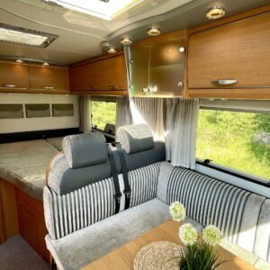 ABS-bromsar, Airbag, Kylskåp, Två däck, Kassettoalett, Kassettgardiner, Taklucka, Spis, Varmvattenberedare, Markis, Servostyrning, Frysfack, Parsäng, Tvättho, Pysäköintikamera, Cykelställ, Radio, Elektriska fönster, Elektriska speglar, Turbo, Truma, Ilmastointi (ohjaamo), Webasto/Eber, Asuinosan hyttysovi/verho, ohjaamon kasettiverhot