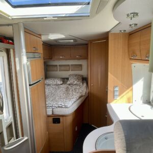 Truma, Polkupyöräteline, Tupla-akut, ranskalainen vuode, jenkkijääkaappi, ohjaamon kasettiverhot, Peruutuskamera, Kassettoalett, Taklucka, Spis, Markis, Servostyrning, Parsäng, Tvättho