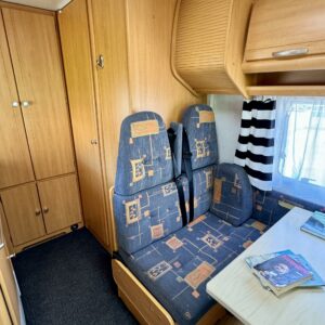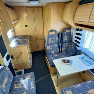 Kylskåp, Två däck, Kassettoalett, Kassettgardiner, Takstänger/stege, Taklucka, Centralvärme, Varmvattenberedare, Markis, Parsäng, Tvättho, Bränsledriven extravärmare, Pysäköintikamera, Cykelställ, Radio, Dusch, Trumatic, Turbo, Spis, CD-soitin, Servostyrning, Frysfack