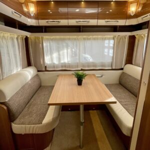 Alde, Separata sängar, Specialfälgar, Kylskåp, Kassettoalett, Kassettgardiner, Taklucka, Spis, Varmvattenberedare, Vätsecirkulationsvärme, Frysfack, Tvättho, Elpatron, Stödben, Lattialämmitys (nestekierto), pullonvaihtaja, kaasun ulosotto, sähkön ulosotto, televisioteline, kwh-mittari, Golvmattor i boendedelen, Kotelomarkiisi