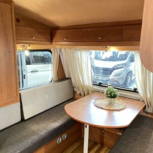 Kylskåp, Kassettoalett, Bakre kök, Lattialämmitys (sähkö), Trumatic, Spis, Taklucka, Golvvärme, Stödben