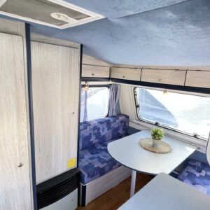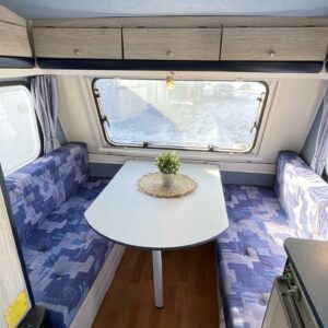 Kylskåp, Kassettoalett, Taklucka, Spis, Tvättho, Bakre kök, Stödben, Lattialämmitys (sähkö), Trumatic