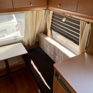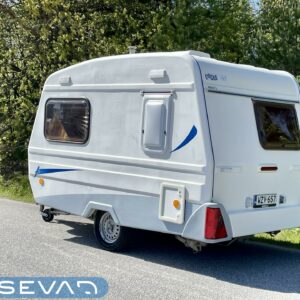 Kylskåp, Kassettoalett, Taklucka, Spis, Tvättho, Bakre kök, Trumatic, Stödben, Lattialämmitys (sähkö)