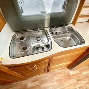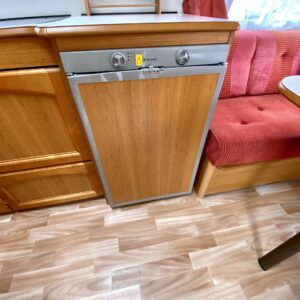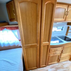 Alde, Kylskåp, Kassettoalett, Kassettgardiner, Taklucka, Våningssäng, Varmvattenberedare, Spis, Vätsecirkulationsvärme, Frysfack, Parsäng, Tvättho, Radio, Dusch, Elpatron, TV-antenni tai lautasantenni, Stödben