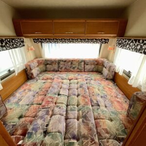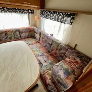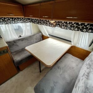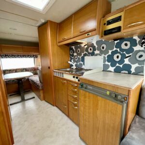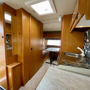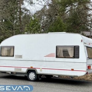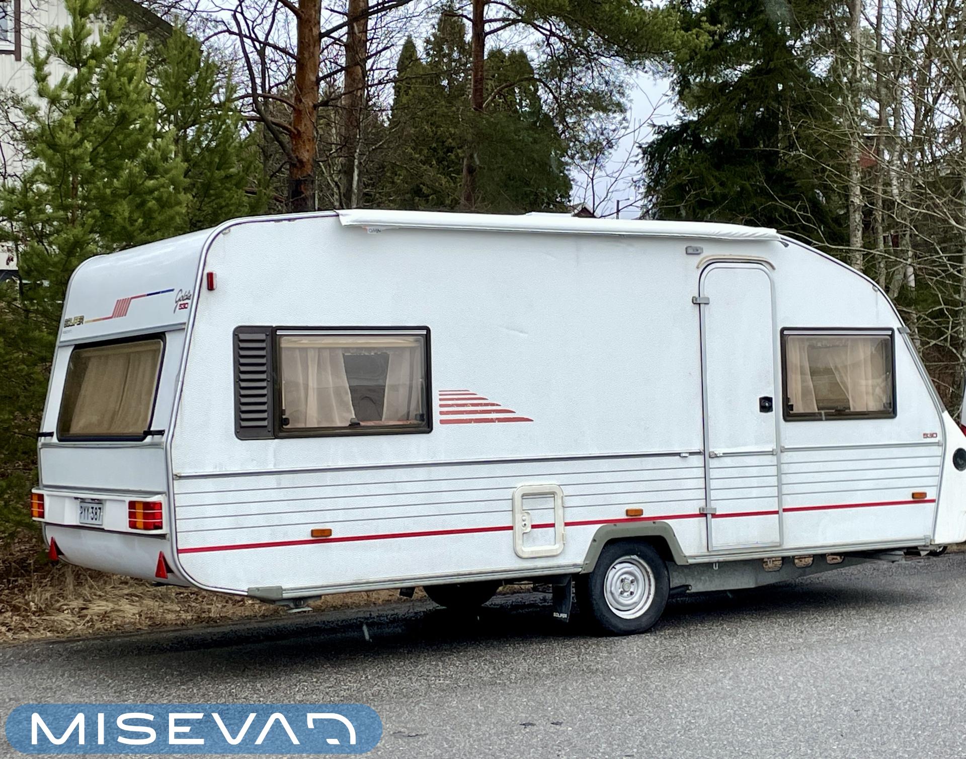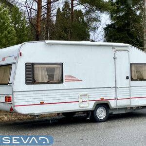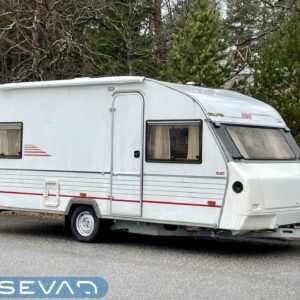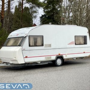 Primus, Elpatron, Kylskåp, Kassettoalett, Taklucka, Våningssäng, Spis, Varmvattenberedare, Vätsecirkulationsvärme, Frysfack, Stödben, Lattialämmitys (nestekierto), Solpanel