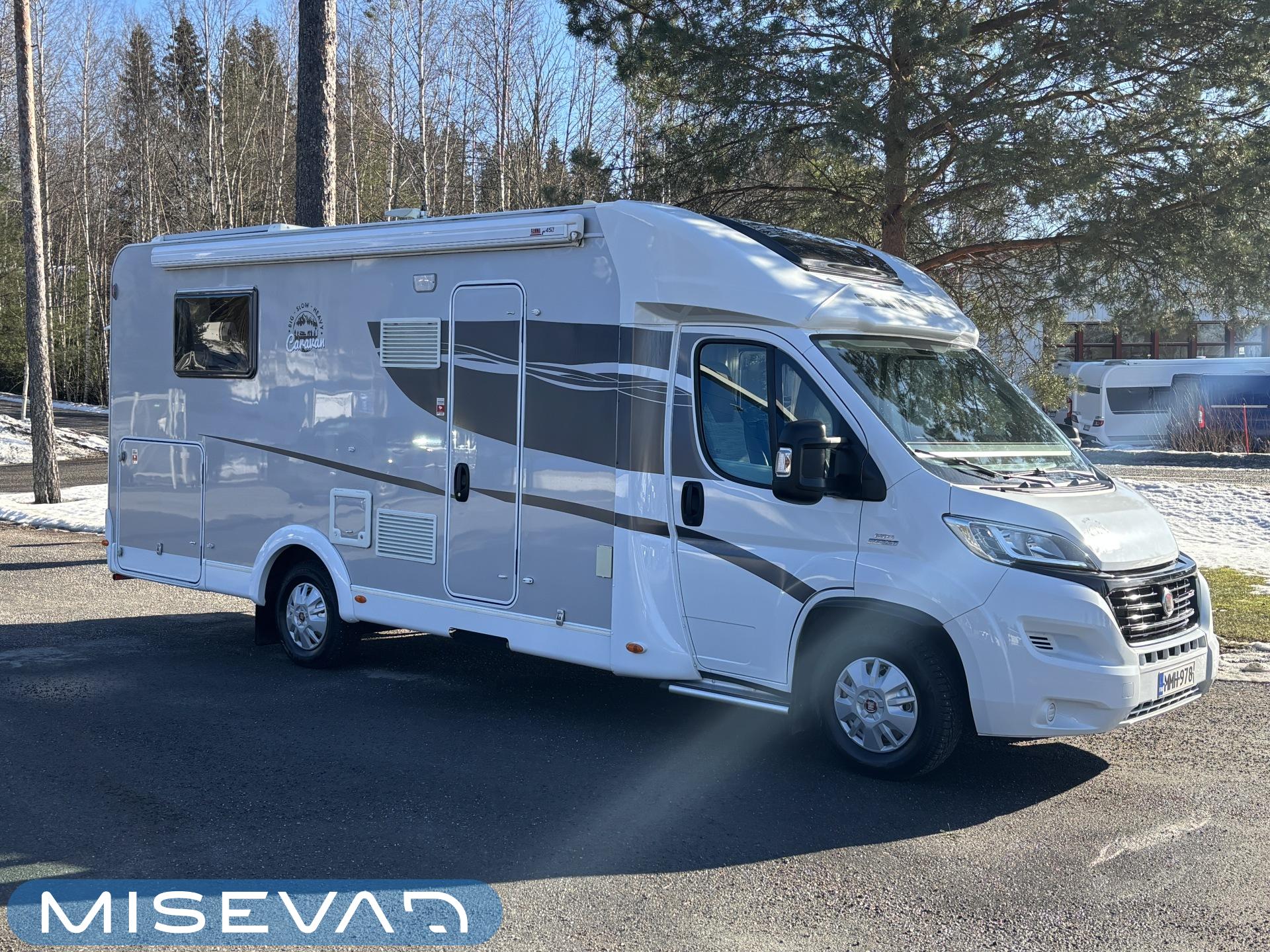 ABS-bromsar, Airbag, System för stabilitetskontroll, Bildator, Solpanel, Specialfälgar, Luftkonditionering i körutrymmet, Kylskåp, Två däck, Kassettoalett, Kassettgardiner, Taklucka, Keskuslukitus: Kaukosäätöinen, Centralvärme, Golvmattor i boendedelen, Spis, Slirskydd, Varmvattenberedare, Markis, Navigator, Servostyrning, Frysfack, Parsäng, Tvättho, Cykelställ, Radio, Dusch, Elektriska fönster, Elpatron, Elektriska speglar, Elektrisk trappa, Dragkrok, Vakionopeudensäädin, Lattialämmitys (sähkö), 2 (ok) renkaat, Kesärenkaat, Talvirenkaat(nasta), Polkupyöräteline, 1 x kevytmet.vanteet, Peruutuskamera, Multimedialaite (sis. p-kamera, navi, Spelare, bluetooth, handsfree), Asuinosan hyttysovi/verho, Webasto/Eber, Tupla-akut
