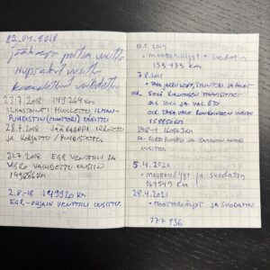 Luftkonditionering i körutrymmet, Två däck, Kassettoalett, Kassettgardiner, Taklucka, Centralvärme, Spis, Varmvattenberedare, Markis, Servostyrning, Parsäng, Tvättho, Dusch, Trumatic, Vakionopeudensäädin, Talvirenkaat(nasta), Kesärenkaat