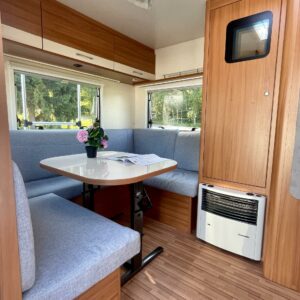 Specialfälgar, Separata sängar, Kylskåp, Kassettoalett, Kassettgardiner, Taklucka, Varmvattenberedare, Spis, Markis, Frysfack, Tvättho, Cykelställ, Dusch, Elpatron, Trumatic, Stödben, Kesärenkaat, kwh-mittari